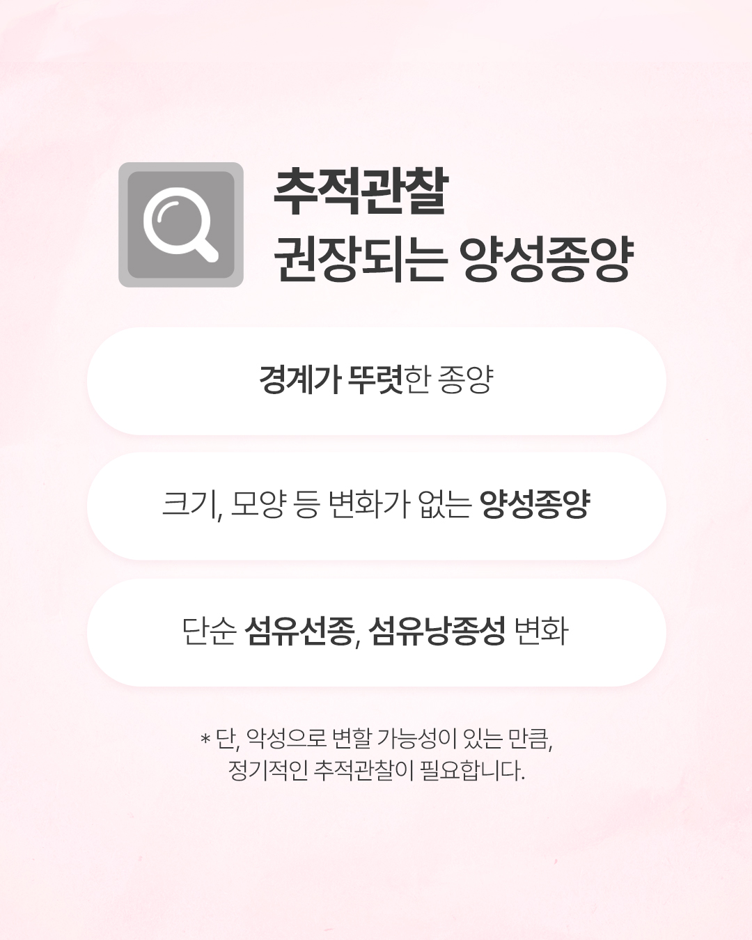 | 유방 양성종양 추적관찰 vs 조직검사 어떻게 해야 할까요? | |||