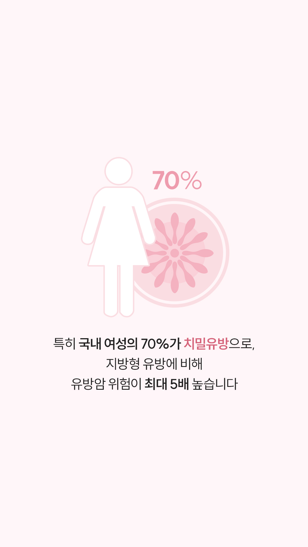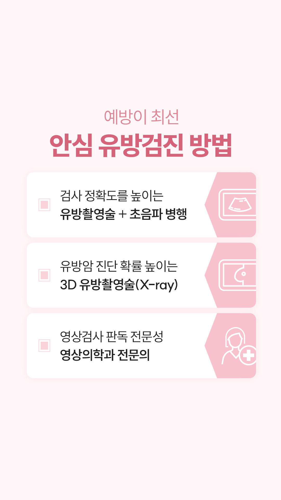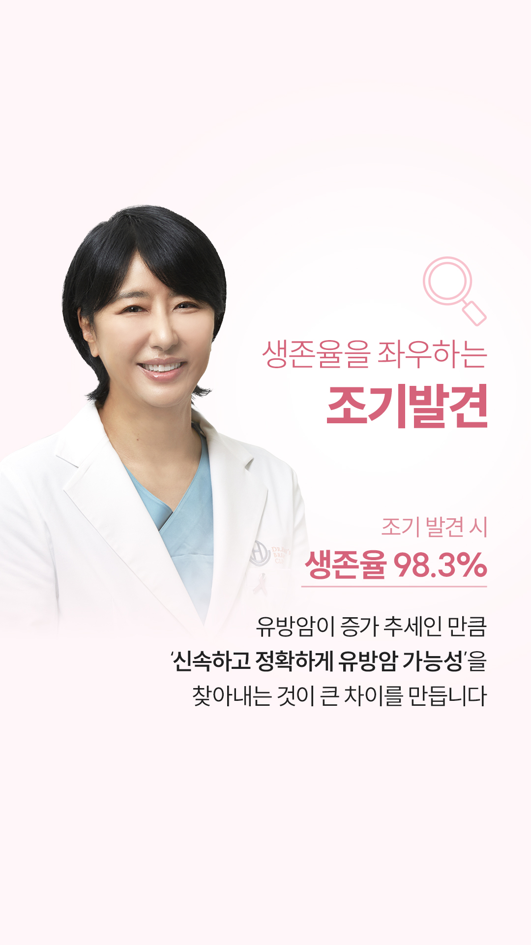Q. 유방암 환자 얼마나 늘어났나요? 국민건강보험공단 조사에 따르면, 2015년 15만 7373명이었던 유방암 진료 인원이 2024년 30만 7910명으로 최근 9년(2015~2024년) 2배 증가했습니다. 최근 9년 동안 유방암이 지속적인 증가 추세를 보이고 있어, 올바른 생활습관과 전문적인 유방검진이 필요합니다. 특히 국내 여성의 70%가 치밀유방으로, 지방형 유방에 비해 유방암 위험이 최대 5배 높습니다. Q. 그렇다면 유방암 예방을 위해서는 어떻게 해야 할까요? (1) 건강한 생활습관 - 건강한 식물성 식단 - 규칙적인 운동, 적정 체중 유지 - 오후 10시~11시 숙면 - 밤 시간 인공조명 최소화 (2) 안심 유방검진 - 검사 정확도를 높이는 유방촬영술+초음파 병행 - 유방암 진단 확률을 높이는 3D 유방촬영술(X-ray) - 영상검사 판독 전문성 영상의학과 전문의 유방암은 조기 발견 시 생존율 98.3% 입니다. 유방암이 증가 추세인 만큼 '신속하고 정확하게 유방암 가능성'을 찾아내는 것이 큰 차이를 만듭니다. ![]() ![]() ![]() ![]() ![]() ![]() ![]() |