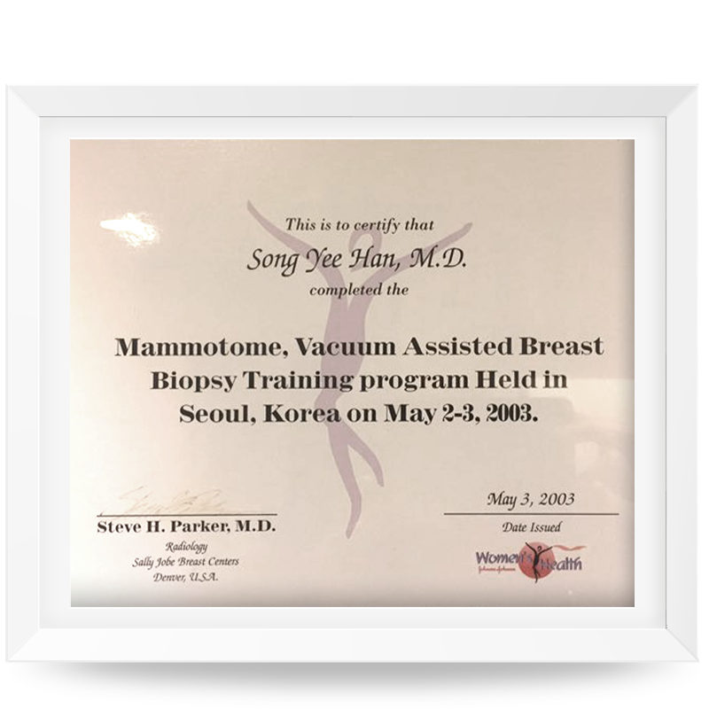 맘모톰 도입 초기부터 현재까지 직접 진단하고 시술하고 있습니다