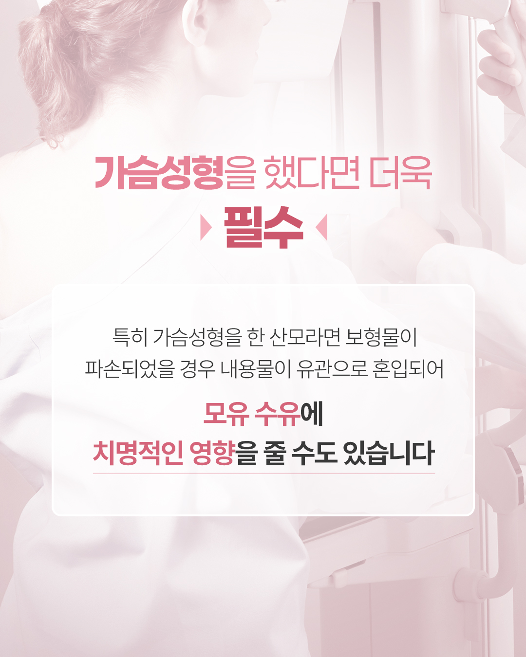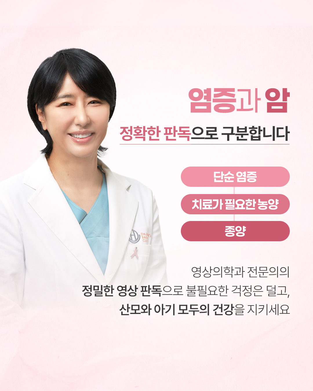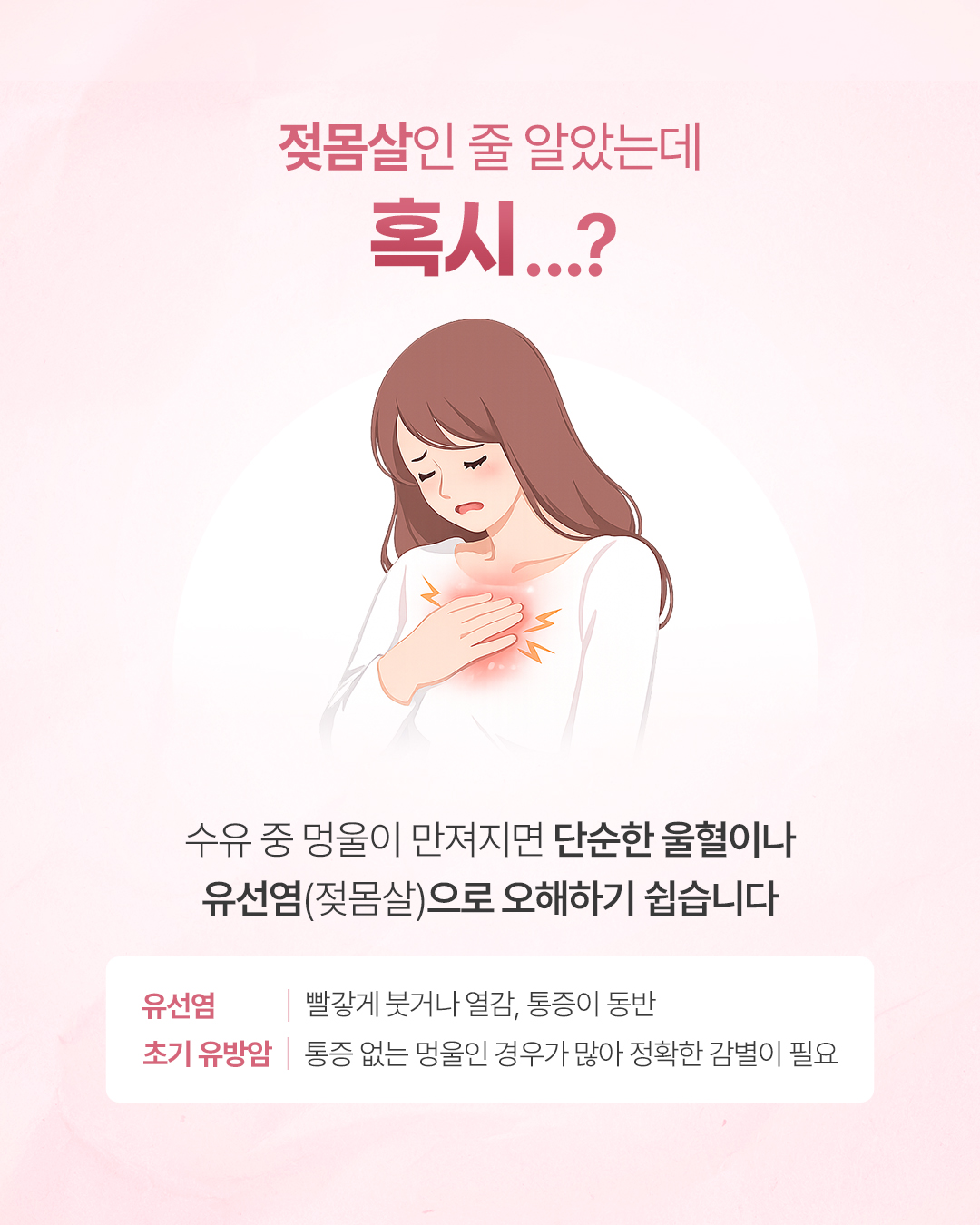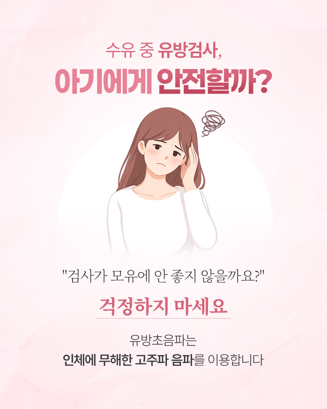 Q. 모유 수유하면 유방암 안 걸리나요? 수유를 하면 유방암 위험도가 다소 낮아지는 것은 사실이지만, 예방되는 것은 아닙니다. Q. 수유 중 멍울이 만져지는 증상은 무엇인가요? 수유 중 멍울이 만져지면 단순한 울혈이나 유선염(젖몸살)으로 오해하기 쉽습니다. - 유선염: 빨갛게 붓거나 열감, 통증이 동반 - 초기 유방암: 통증 없는 멍울인 경우가 많아 정확한 감별이 필요 Q. 수유 중 유방검사, 아이에게 안전할까요? 검사가 모유에 안 좋지 않을까요? 걱정하지 마세요. 유방초음파는 인체에 무해한 고주파 음파를 이용합니다. ![]() ![]() ![]() ![]() ![]() ![]() ![]() |